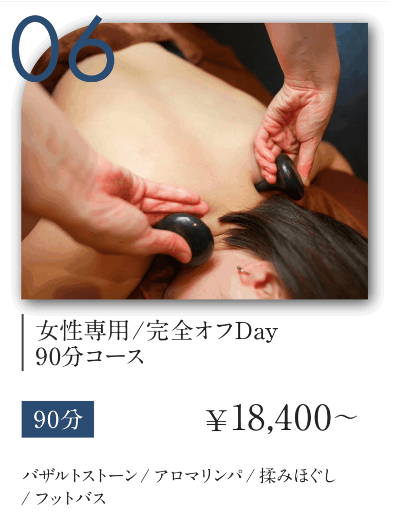 PMSの症状がひどく、気持ちの波に悩んでいました。こちらのサロンは体だけでなく心のケアもしてくださり、毎回リセットできる私のパワースポットになっています。会員制で他のお客様と会わないのも嬉しいです。